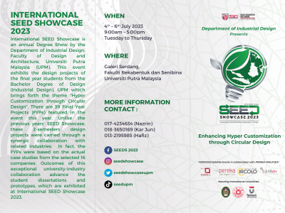 Studied Industrial Design at University Putra Malaysia (UPM), with 1 year experience in Industrial & Manufacturing, Graphic Design and Art & Design and more.