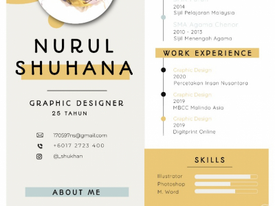 Studied Diploma Of Graphic Design & Multimedia at University Of College Yayasan Pahang, with 2 years experience in Graphic Design.