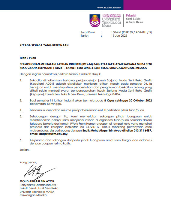 Studied GRAPHIC DESIGN at UITM ALOR GAJAH.