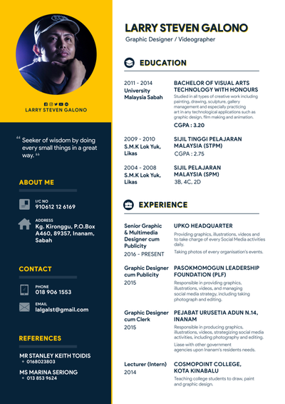 Studied Visual Art Technology at University Malaysia Sabah, with 7 years experience in Political and Community & Non Profit.