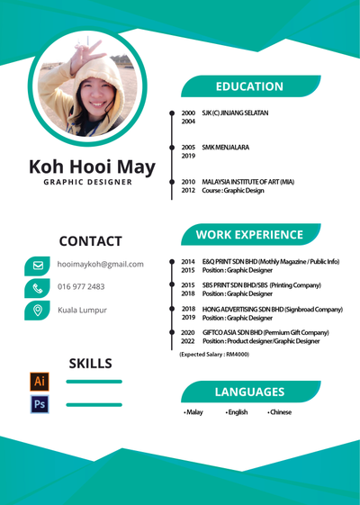 Studied Graphic Designer at Malaysia Institute Of Art, with 8 years experience in Graphic Design.