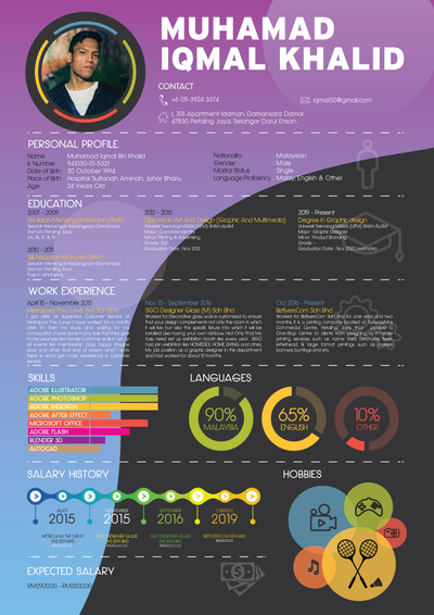 Studied Diploma In Multimedia, Advertising And Broadcasting at Limkokwing University, with 5 years experience in Graphic Design.