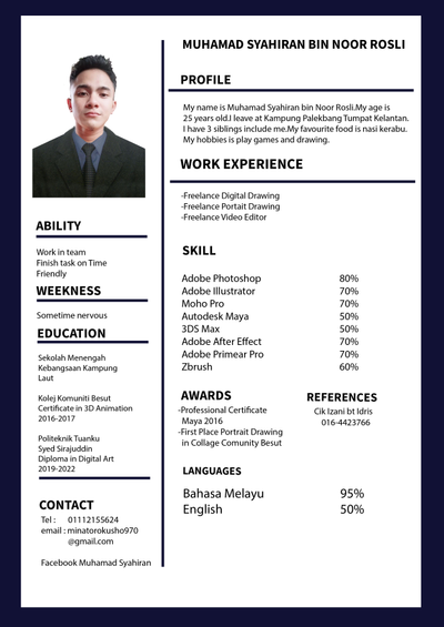 Studied Bachelor In Computer Science (Graphic Multimedia & Technology) at University Malaysia Pahang (UMP).
