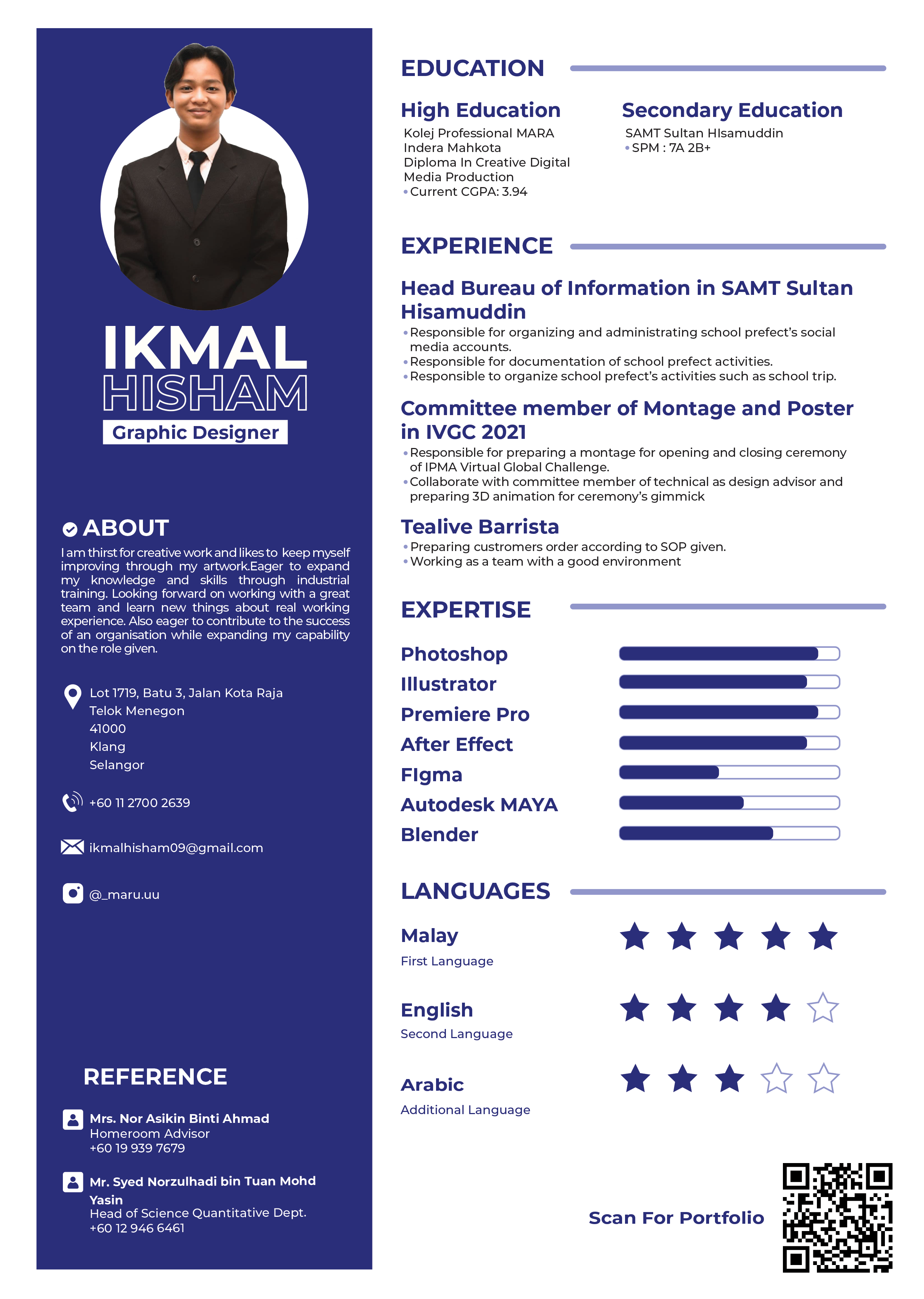 Studied Diploma In Creative Digital Media & Production at Kolej Profesional Mara Indera Mahkota.