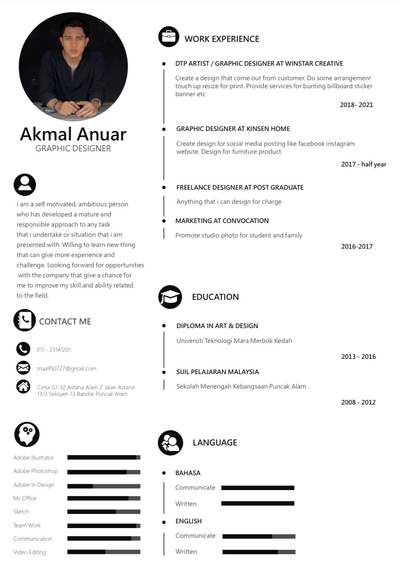 Studied Bachelor Degree In Art Design, Majoring Printing Technology at Universiti Teknologi MARA (UiTM), with 4 years experience in DigitalMarketing.