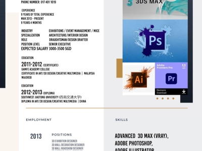 Studied Bachelor In Interior Architecture at UiTM, with 5 years experience in Architecture and Graphic Design.