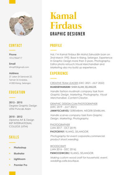 Studied Graphic Design at Taylor's University, with 1 year experience in Graphic Design.