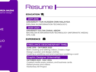 Studied Bachelor In Industrial Design at Universiti Sultan Zainal Abidin, with 8 years experience in Automotive, Media & Entertainment, Graphic Design and more.