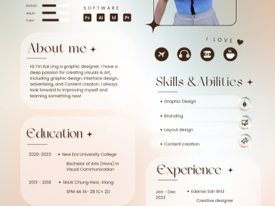 Studied Bachelor Of Arts (Honours) In Visual Communication at New Era University College, with 1 year experience in Media & Entertainment.