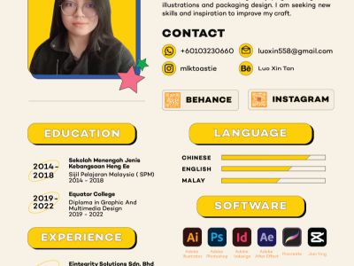 Studied Degree In Graphic Design at University Technology Mara (UiTM), with 3 years experience in Food & Beverage and Graphic Design.