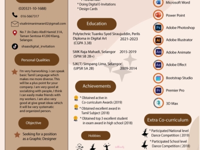 Studied Multimedia Creative at Cybernetics College International Of Technology, with 3 years experience in Graphic Design.