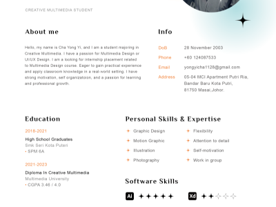 Studied Bachelor (Hons) In Creative Media (Graphic Design Specialization) at Taylor's Lakeside University, with 2 years experience in Art & Design and Graphic Design.