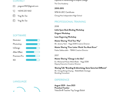 Studied Bachelor Of Art (hons) Graphic And Multimedia Design at Universiti Tunku Abdul Rahman (UTAR), with 3 years experience in Marketing & Sales, Graphic Design and Art & Design and more.